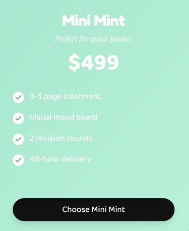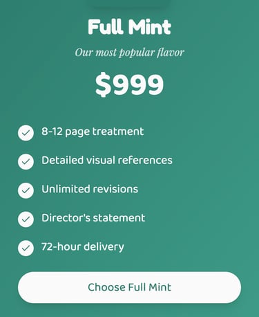At Treatmint, we believe every pitch deserves to be wrapped in creativity and served with style. We're here to make your director's treatments as irresistible as they are professional.